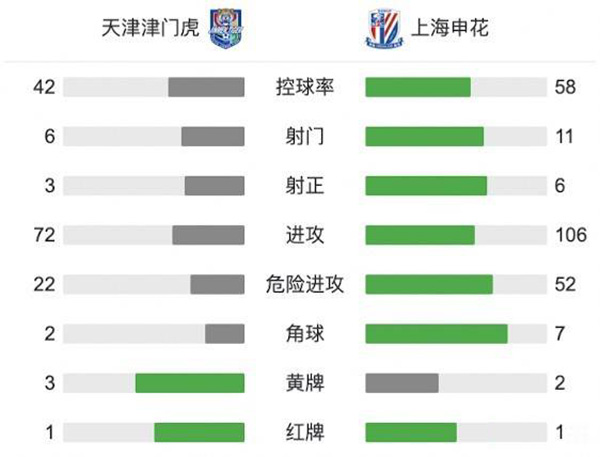 全场比赛结束,上海申花3-1击败天津津门虎,收获2连胜。
