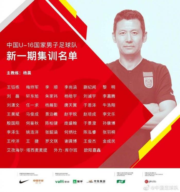 JRS直播网讯 今天下午,中国足协公布了U16国少队第二期集训45人名单,杨晨挂帅,将带领球队于6月16日-7月5日在云南昆明海埂体育训练基地组织集训。