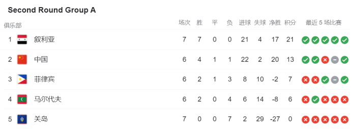 世预赛A组排名: 国足4胜1平, 基本锁定小组第二