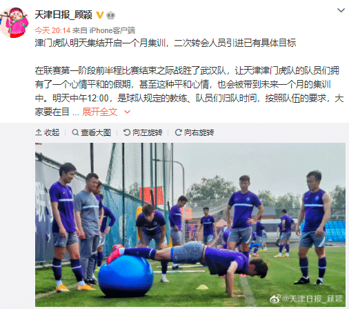 JRS直播网讯 ,顾颖发文表示,津门虎队明天集结开启一个月集训,二次转会人员引进已有具体目标。
