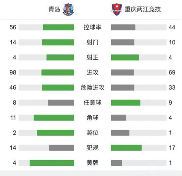 青岛1-0重庆 博拉尼奥斯进球被取消刘健补时绝杀