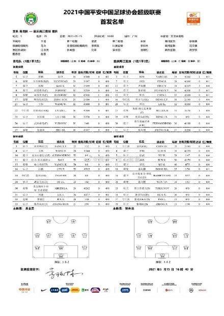 JRS直播网讯 北京时间5月15日,中超第5轮,青岛迎战重庆两江竞技。赛前,双方公布了首发名单。