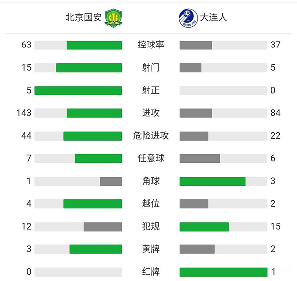 国安2-0大连人 张稀哲两分钟内双响童磊染红
