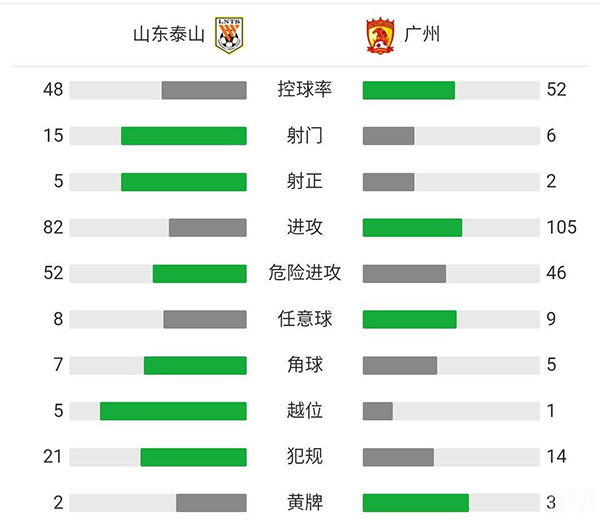 JRS直播网讯:北京时间4月27日15:35,中超第2轮,山东泰山对阵广州,主裁为王迪。上半场莱昂纳多禁区挑球过人抽射打高,蒋光太门线解围救险。下半场阿兰劲射被王大雷扑出,费莱尼绝杀。最终,山东1-0广州。