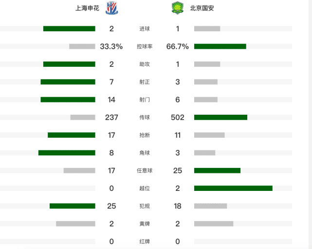 根据赛后统计,申花此役高达25次犯规,而国安这边也有18次犯规,双方各拿到2张黄牌,这也直接反映了本场比赛确实激烈十足。