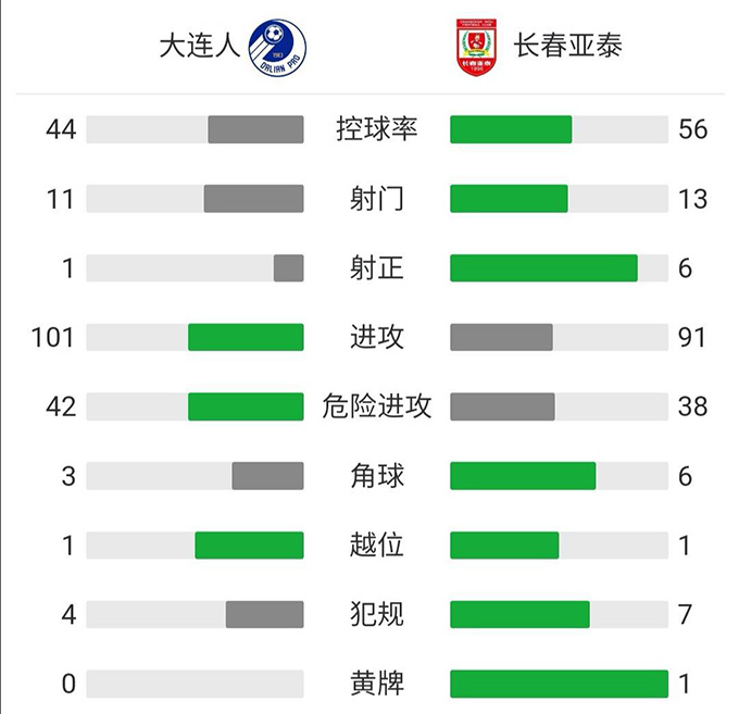 第35分钟,亚泰取得领先,儒尼奥尔摆脱丹尼尔森的防守后远射,皮球打在大连人防守球员董岩锋腿上后折射飞入球网,亚泰1-0领先大连人。
