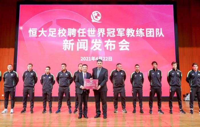 恒大足校校长王亚军在发布会上也表示:引进世界冠军教练团队执教,是恒大足校发展进程中的里程碑,也开创了中国青训史上前所未有的第一次。恒大足校将坚守为中国足球做贡献的初心,把恒大足校打造成为具有中国特色、人才辈出的世界一流足球学校。
