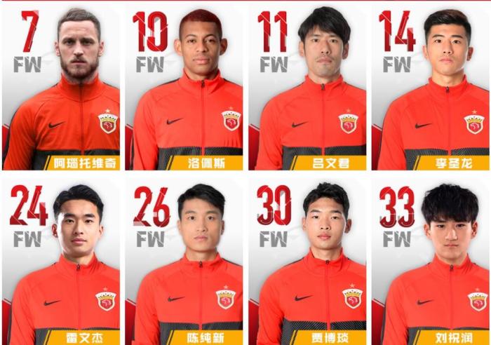 中场:6-蔡慧康,8-奥斯卡,16-张华晨,18-张一,19-穆伊,20-杨世元,25-木热合-买提江,31-高海生,36-阿布拉汗