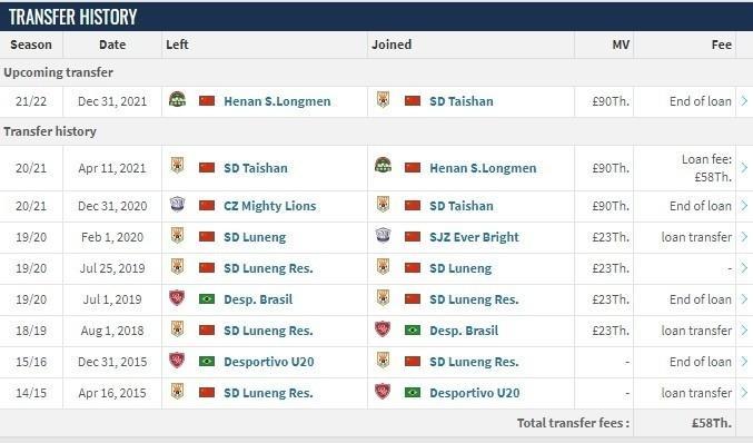 JRS直播网讯4月11日德国《转会市场》更新显示,24岁的泰山球员陈蒲租借加盟河南嵩山龙门。此外,与陈蒲一起租借加盟球队的还有艾合买提-吐尔逊江。