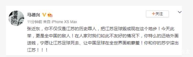 种种迹象表明,天津津门虎未来仍可期。相比之下,江苏队未能准入则显得相当悲情,因为苏宁集团并没有像泰达那样给球队很好的活路,而是直接早早宣布停止运营,然后退出,一点点挽回的余地都没有。对于这样的现象,知名足球媒体人马德兴也在社交平台疯狂吐槽苏宁,认为苏宁把钱砸给了国米却不愿意继续运营江苏队,进而让江苏解散,甚至直接怒骂张近东让中国足球在全世界面前蒙羞。