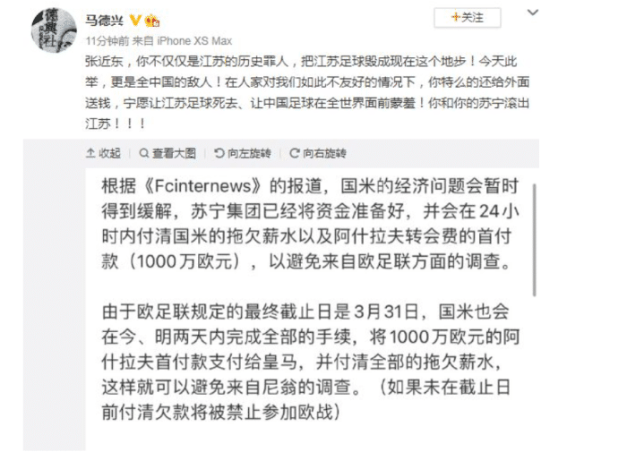 JRS直播网讯 3月29号中国足协终于公布联赛准入名单。一共有6支球队退出,其中有3支球队来自江苏,这包括中超的卫冕冠军江苏队,天津队“压哨复活”,新华社评论足协推迟名单公布很不职业;江苏正式退出之后,知名媒体人马德兴炮轰苏宁,老马认为张近东是江苏足球的罪人,也是中国足球的罪人!