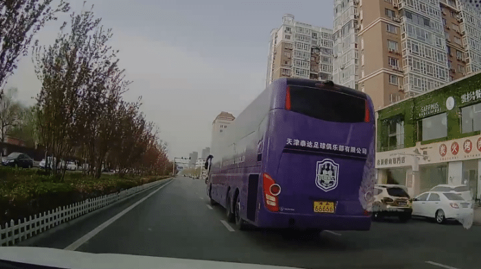 天津的球迷们一定会很开心,他们的城市依旧有顶级球队,很快天津津门虎的大巴车就抢镜,他们被拍到了闯红灯和在直行车道掉头。这是根据球迷拍摄的,时间显示是今天下午4点多,也就是在足协公布准入名单不到一个时间的时间里发生的。