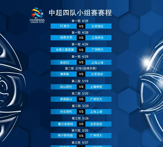 2020年1月7日下午,中国足协在官方网站上公布了2020赛季中超、中甲、中乙联赛及足协杯赛竞赛日历。根据日历显示,2020赛季中超联赛将于2月22日开战,10月31日收官。足协杯决赛首回合将在11月21日开战,次回合将在12月5日。