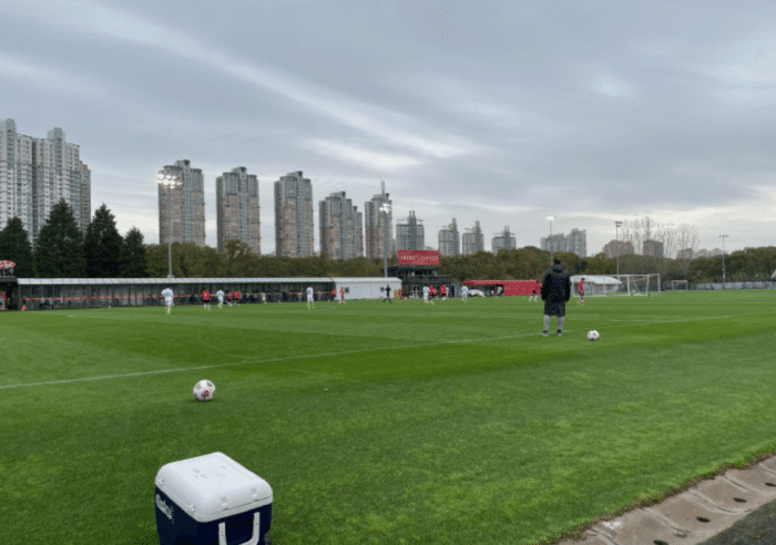 今日午后15:00,在蒙蒙细雨中,上海海港同来访的青岛足球俱乐部,在世纪公园训练基地进行了一场教学比赛。经过90分钟的对抗,上海海港最终以3:0的比分获得了本场教学赛的胜利。