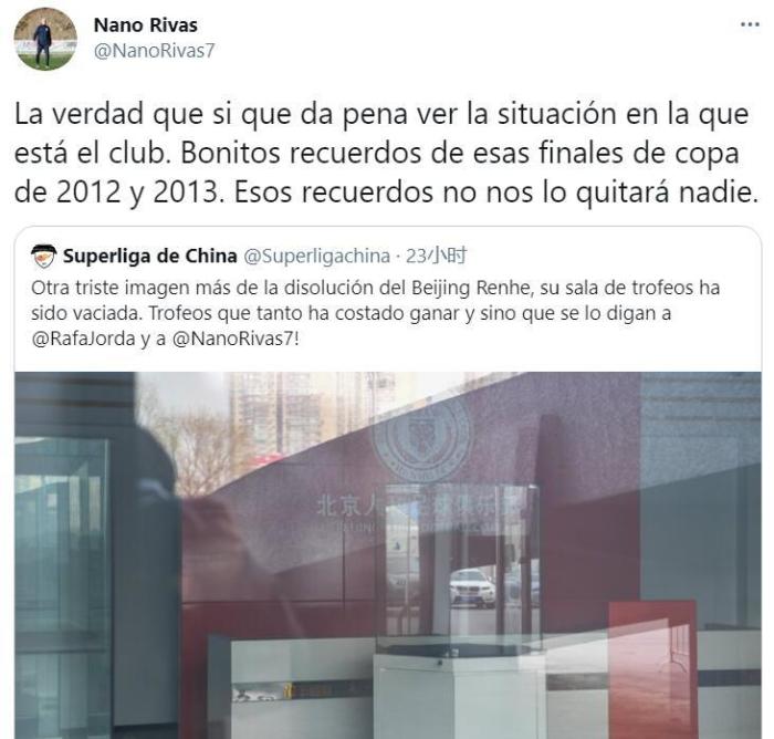 JRS直播网3月10日讯 此前,有媒体报道,北京人和俱乐部将在本月解散,前人和外援纳诺-雷瓦斯在个人社交媒体上表达了惋惜。