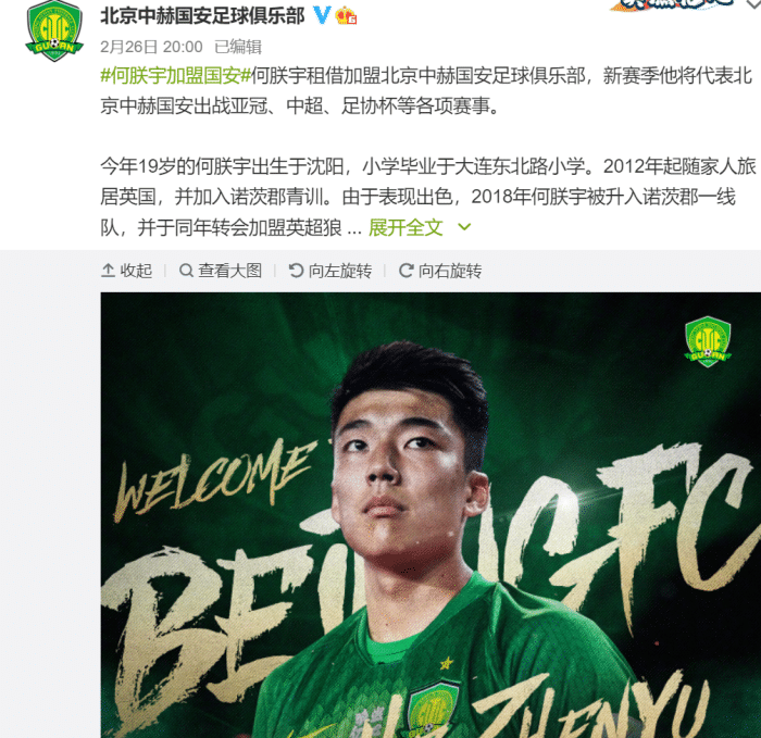 JRS直播网3月4日讯 随着中超联赛进入至暗时刻,江苏苏宁和天津泰达已经“收拾行李”准备离开,作为中超“八冠王”的广州恒大也不敢吭声。万万没想到的就是,有一家俱乐部避其锋芒,不仅未改“中性化”队名还连续引进三名球员。北京国安在官宣曹永竞与高天意两位年轻球员之后,还将狼队海归球员何朕宇招致麾下。值得一提的就是,何朕宇最爱吃西餐,还与上赛季表现出色的戴伟浚曾经同袍。