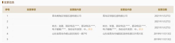 JRS直播网1月28日讯 据国家企业信息公示系统显示,青岛黄海足球俱乐部已更名为青岛足球俱乐部。