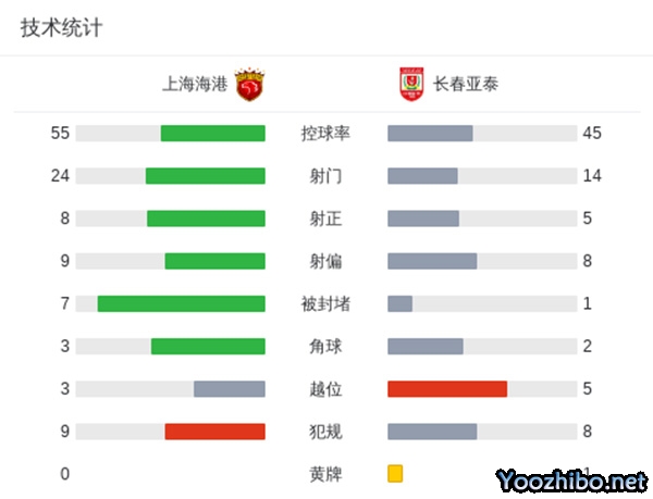 JRS直播网讯:北京时间5月10日晚间20:00,中超联赛第11轮,上海海港坐镇主场迎战长春亚泰,本场比赛主裁判为张杨帆,VAR视频助理裁判为李海新。上半场,古斯塔沃率先破门,严智宇手球送点,随后被取消,武磊扩大比分,孙国梁扳回一城,巴尔加斯精彩一条龙破门。下半场,武磊和古斯塔沃分别再入一球,贝里奇利用魏震失误,远射破门。最终,上海海港 5-2 长春亚泰。