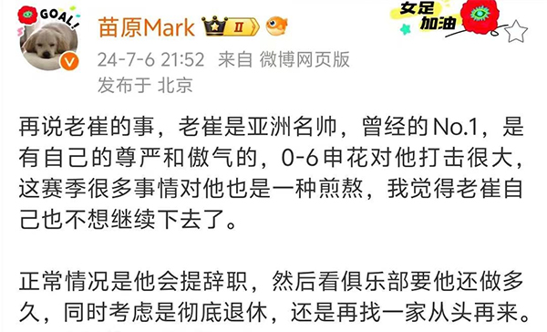 0:6输给上海申花,但是本质上这也只是一场比赛,这一场比赛不会触及到崔康熙下课的调侃,不过根据名记苗原报道,崔康熙接下来或许将官宣决定。崔康熙会官宣什么决定呢?苗原表示本赛季对于崔康熙来说是一种煎熬,崔康熙也不想继续下去,因为崔康熙是亚洲名帅,是NO.1。