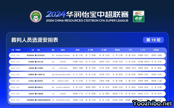 JRS直播网讯 北京时间7月12日,中超官方公布了第19轮裁判的安排。值得一提的是,执法了中超第7轮梅州与海港补赛的争议主裁任通,在缺席3轮比赛、疑似被禁哨后,再次参与到中超的裁判工作中,他将担任成都蓉城与天津津门虎比赛的第4官员。