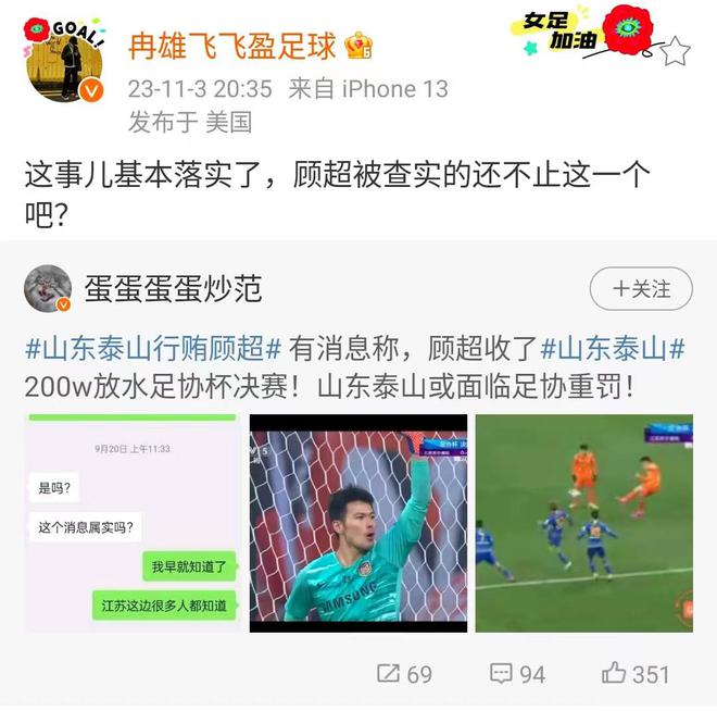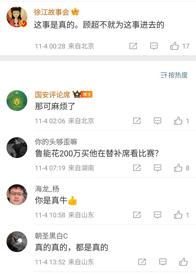 不过让山东鲁能球迷真正感到头疼的或许并不是这4个人的事情,而是此前名记冉雄飞和徐江爆料的山东鲁能在足协杯决赛给了浙江门将顾超200万让他配合放水的事情,徐江表示:顾超不就是因为这个事情进去的吗?而如果这件事情最终被实锤,而且被认定是俱乐部行为,那山东鲁能就很有可能受到重罚,处罚的措施就包括了扣分、乃至于最终的降级,所以顾超这200万到底是不是真的?200万事谁给的将成为事情的关键。