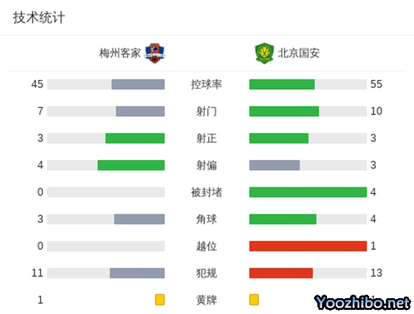 全场结束,梅州客家1-3北京国安。