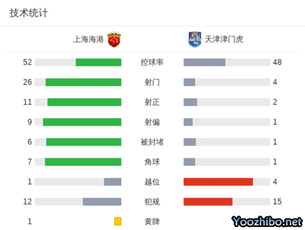 最终上海海港主场5-0大胜天津津门虎。