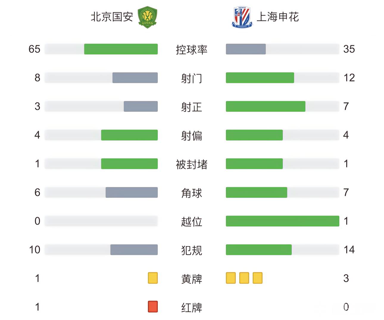 最终北京国安主场2-1战胜上海申花。