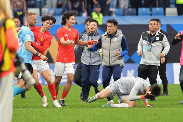 在此前中甲广州队客场1-0力挫大连英博的赛后,广州队门将霍深坪赛后向主队球迷3次鞠躬,这引发了大连英博球员强烈不满,随后双方爆发了激烈冲突,霍深坪被对方球员王选宏和科特尼克追打。