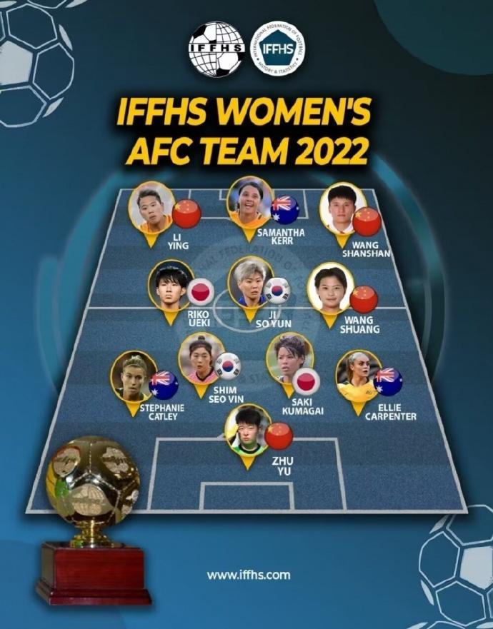 JRS直播网01月26日讯 IFFHS公布了亚足联2022年女足最佳阵容,中国女足共有王霜、朱钰、王珊珊、李影4名球员入选。