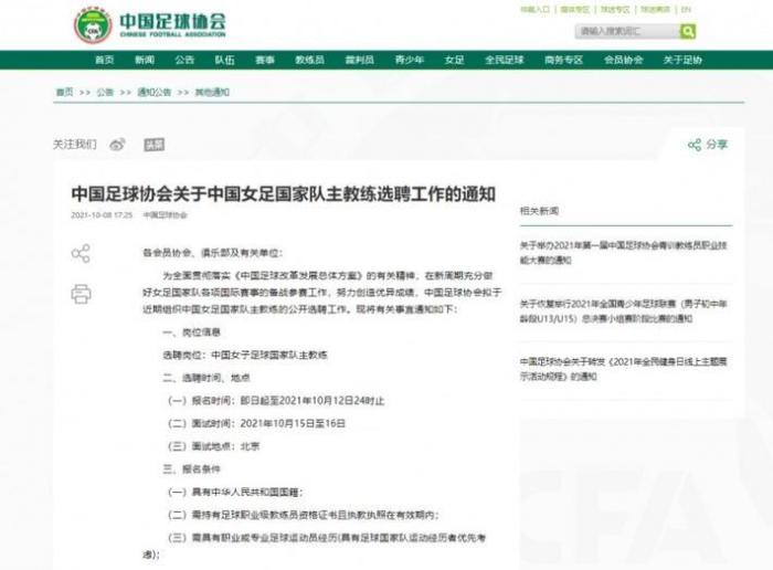 JRS直播网10月09日讯 据《北京青年报》报道,有一位前国脚对执教中国女足意愿强烈。