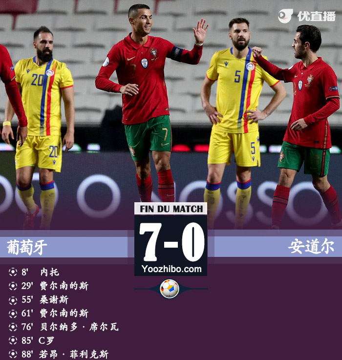 全场比比赛结束,葡萄牙在主场7-0的比分获得一场大胜。