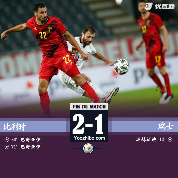 下半时,双方易边再战。第49分钟,蒂勒曼斯前场断球后送出精准直塞,巴舒亚伊得球扣过防守球员。随后面对门将轻松推射破门,比利时扳平比分,1-1!