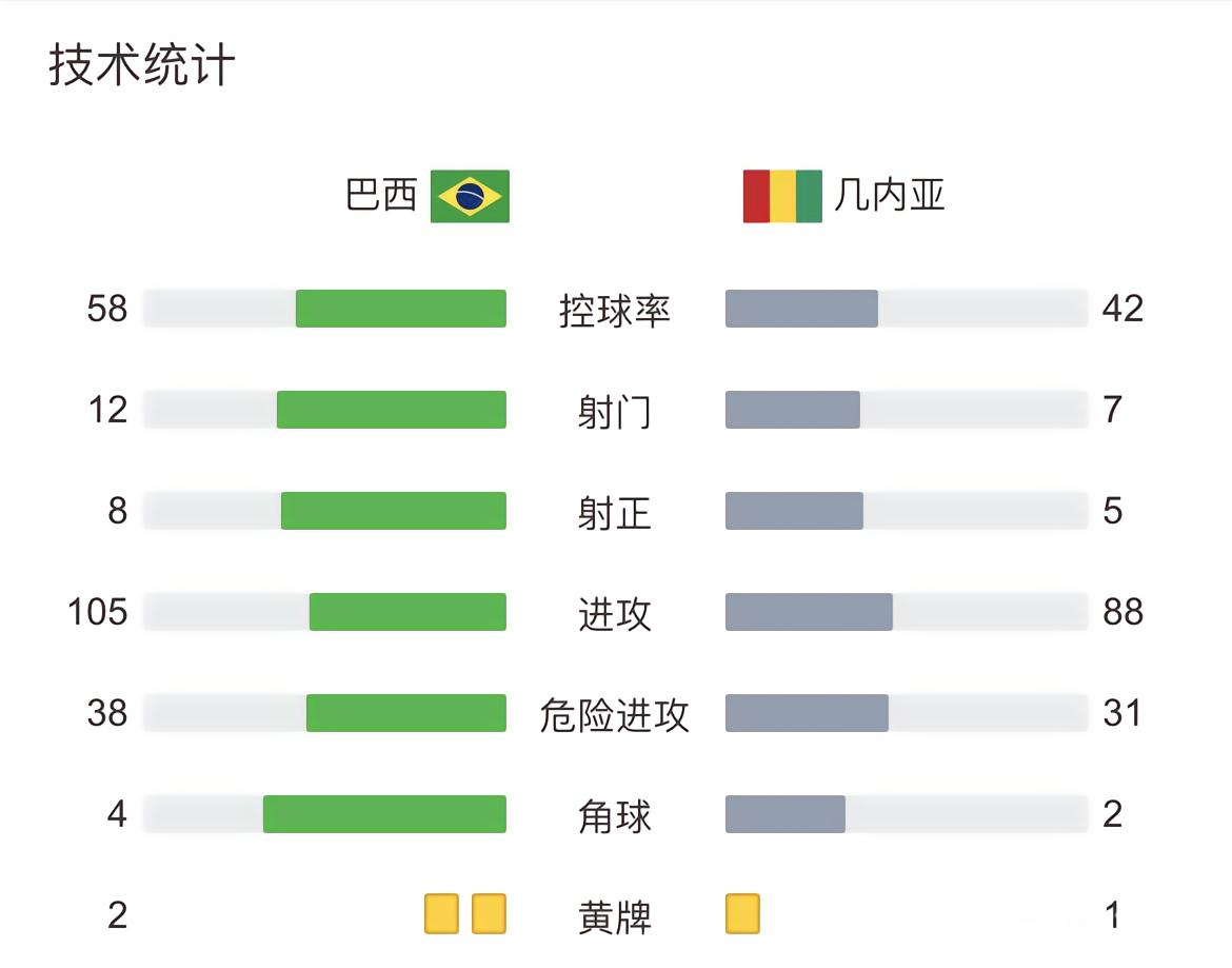 巴西4-1几内亚 罗德里戈破门维尼修斯点射米利唐建功