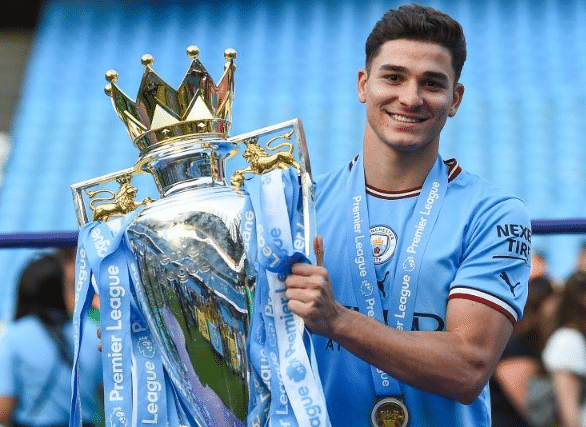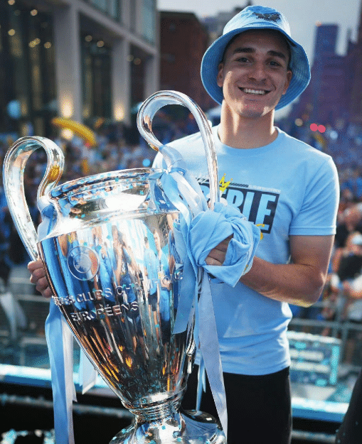 欧冠决赛,阿尔瓦雷斯虽然没有出场,但一直随队备战欧冠决赛,曼城在决赛中以1-0击败国际米兰,队史首夺欧冠冠军,同时斩获三冠王的成就。阿尔瓦雷斯并非是绝对的主力,但在曼城队内也是非常重要的球员,为曼城夺得三冠王立下汗马功劳。