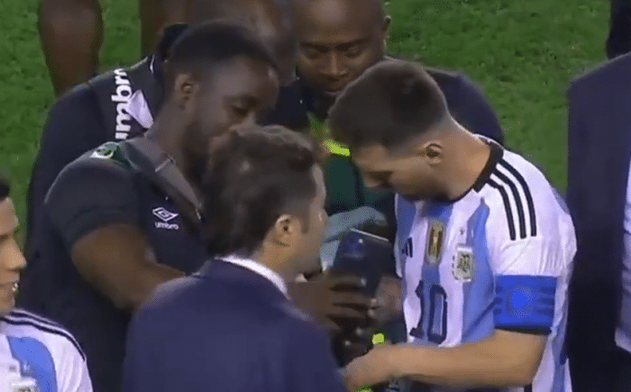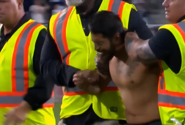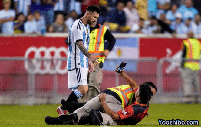本场比赛也是小插曲不断,疯狂的球迷上演了帽子戏法,球迷三次冲入到了场内,只为梅西,第63分钟的时候,一位球迷直接闯入了场内,被多名保安放倒的时候,他还拿着手机在对着梅西拍照,另外还有一位球迷赤裸上身冲进场,他请求梅西在背上给他签名,梅球王是个实在人,他拿起笔开始签,刚签了一半,保安直接将球迷放倒了,有球迷说道:保安有点不解风情啊,这个赤裸上身的球迷,失声哭泣。