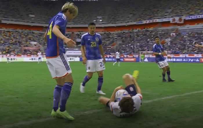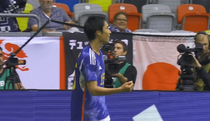 下半场的比赛开始后,比赛来到第60分钟的时候,裁判出示了本场比赛的第一张黄牌,给到美国队球员,比赛来到第87分钟的时候,三笘薫破门,场上比分变成了2:0,剩下的时间两队都没有取得进球,最终全场比赛结束,日本队2:0战胜美国。