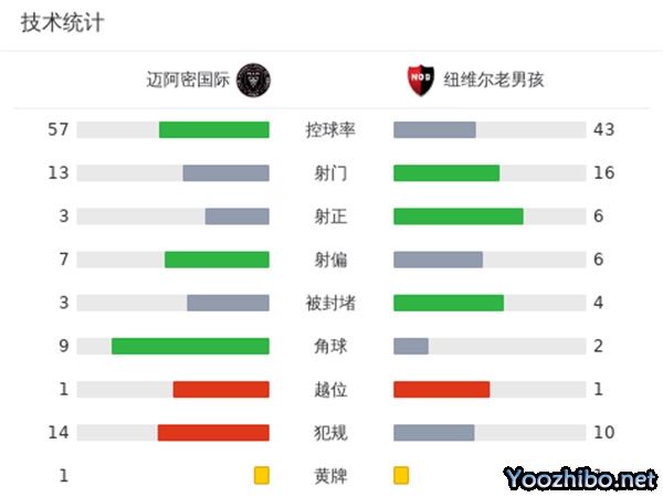 全场比赛结束,迈阿密国际1-1纽维尔老男孩。