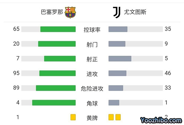 全场比赛结束,巴塞罗那2-2尤文图斯。