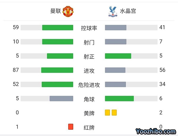 全场比赛结束,最终曼联3-1击败水晶宫。