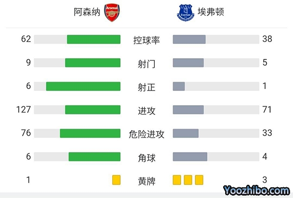 阿森纳2-0埃弗顿 热苏斯传射建功萨卡破门扎卡头球中框