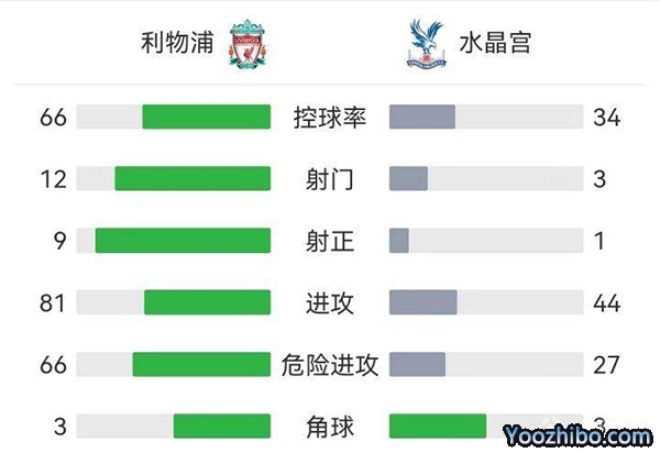 全场比赛结束,利物浦2-0轻取水晶宫。