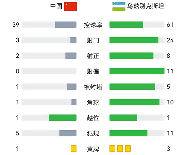 最终中国男足主场1-2遭乌兹别克斯坦逆转,国足近两战1胜1负。