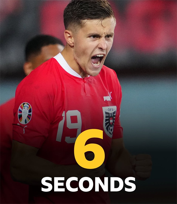 JRS直播网讯 在北京时间3月24日凌晨结束的一场热身赛中,世界排名第25位的奥地利,以2-0击败了世界排名第48位的斯洛伐克。而本场比赛,效力于德甲莱比锡红牛的奥地利24岁中场鲍姆加特纳,开场仅6秒便取得进球,刷新了尘封11年的国家队比赛最快进球纪录。