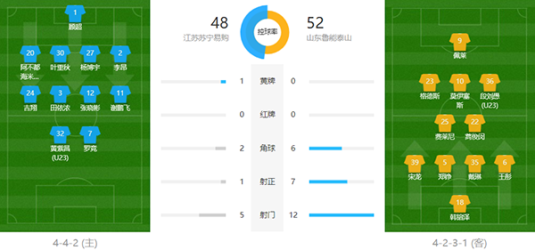 查看:江苏苏宁vs山东鲁能 全场录像 技术统计: