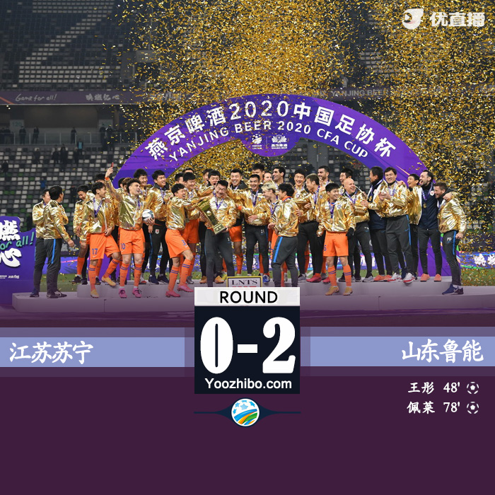 JRS直播网讯:北京时间12月19日15:00,足协杯决赛在江苏苏宁和山东鲁能之间进行。上半场佩莱头球造险顾超贡献精彩扑救。下半场王彤内切精彩破门,佩莱头球建功。最终鲁能2-0击败苏宁,在连续两年拿到足协杯亚军后成功捧起队史第六座足协杯冠军奖杯,同时成功进入下赛季亚冠正赛。