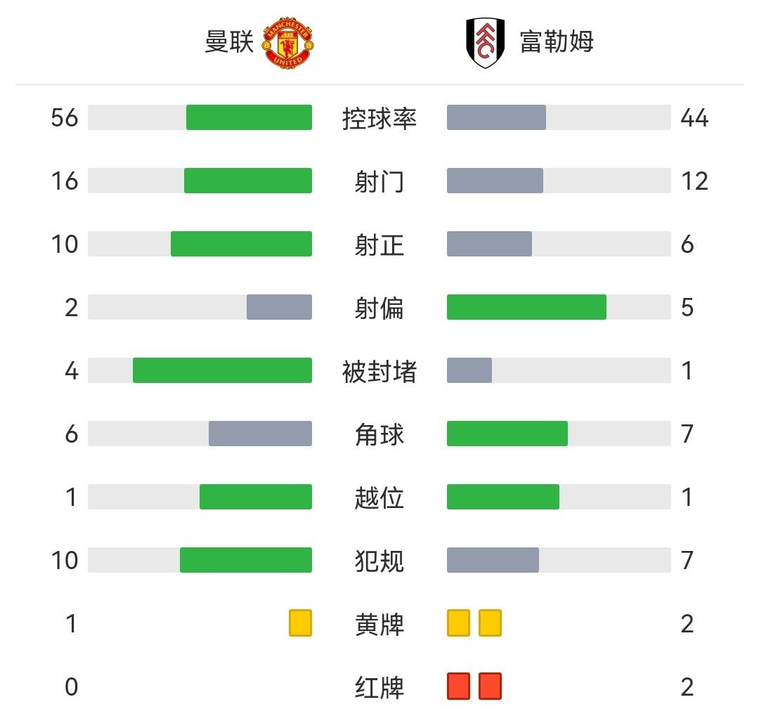 最终全场比赛结束,曼联3-1淘汰富勒姆,晋级足总杯四强。