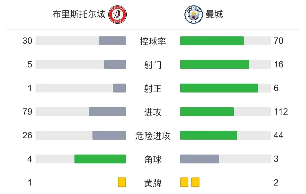 最终曼城客场3-0布里斯托城成功晋级。