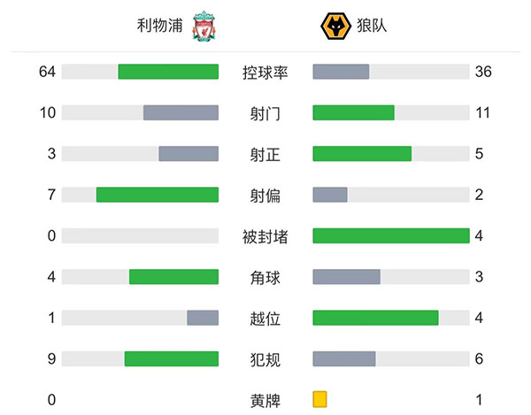 全场比赛结束,最终利物浦主场2-2战平狼队