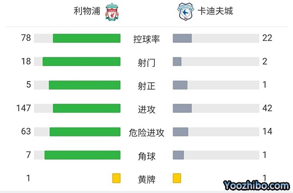 全场比赛结束,利物浦3-1卡迪夫城!
